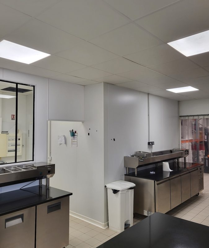 Forts de notre expertise en plâtrerie et cloisons en plaque de plâtre, nous avons créé un espace optimisé, facile à entretenir, et répondant aux exigences du métier de restaurateur.